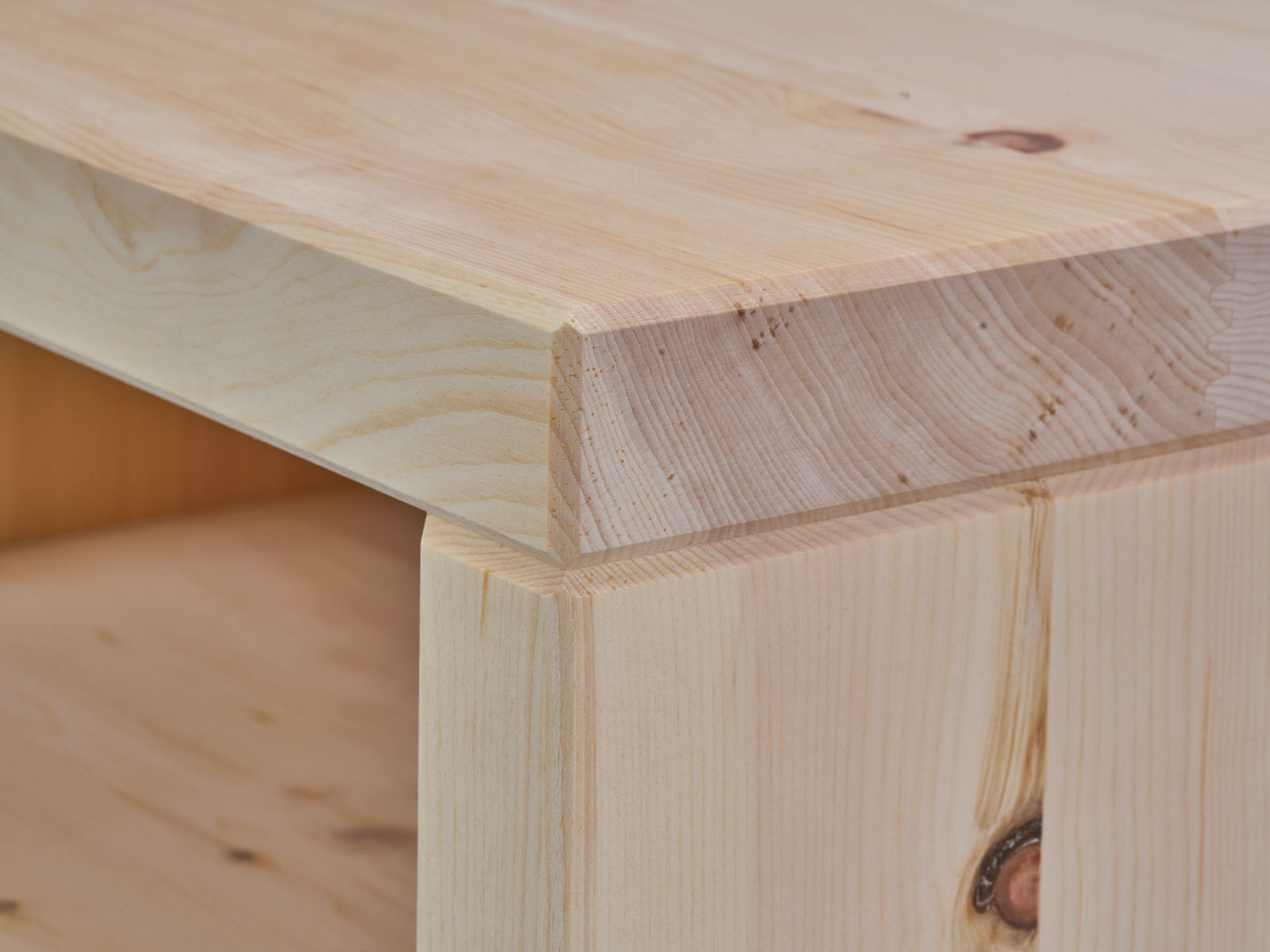 - Nachtschrank aus massivem Zirbenholz roh geschliffen und unbehandelt für gesunden Schlaf