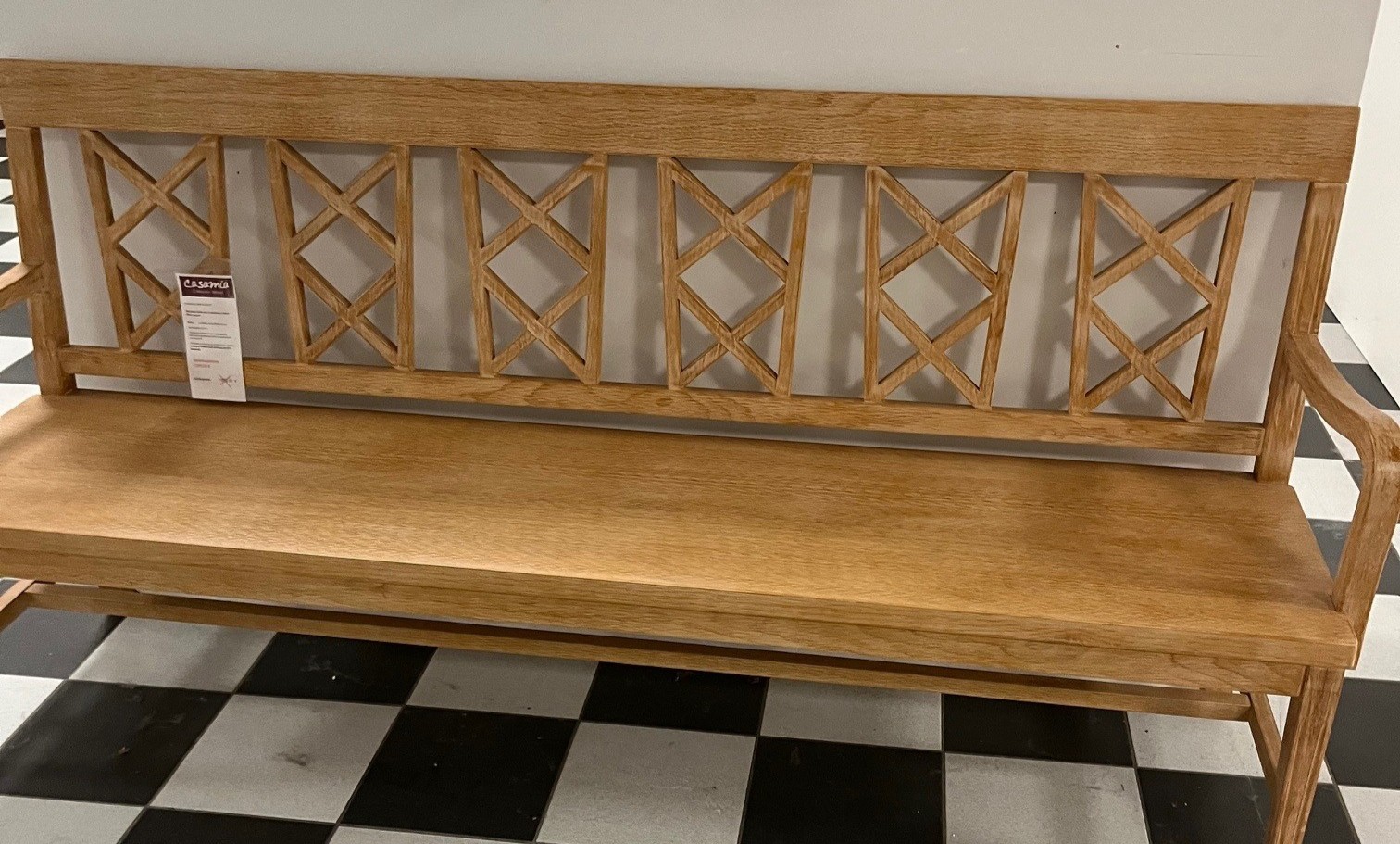 Sitzbank massiv mit Holzsitz und Armlehnen mit Holzsitz, Farbe karamell - Ausstellungsstück