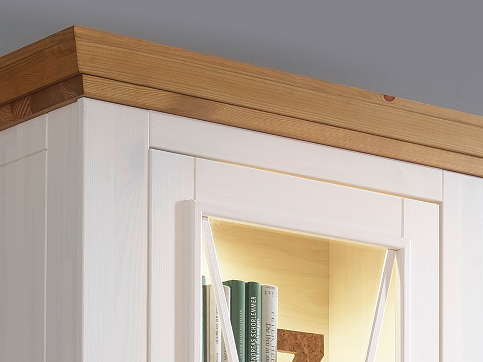 - Stand-Vitrine mit schönem weißen Farbton in Pinie Nordica gewachst